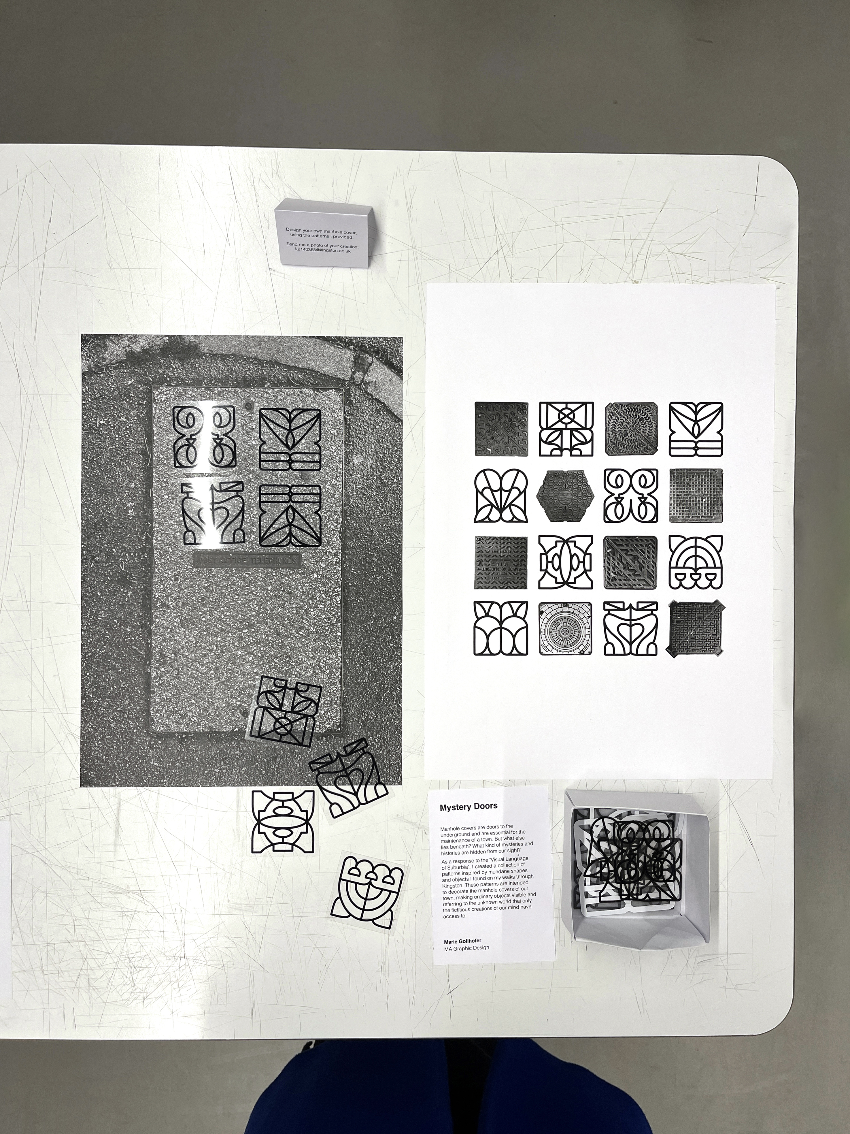 and objects I found on my psychogeographic walks through Kingston. These patterns are intended to decorate the manhole covers of this town, making ordinary objects beautiful and